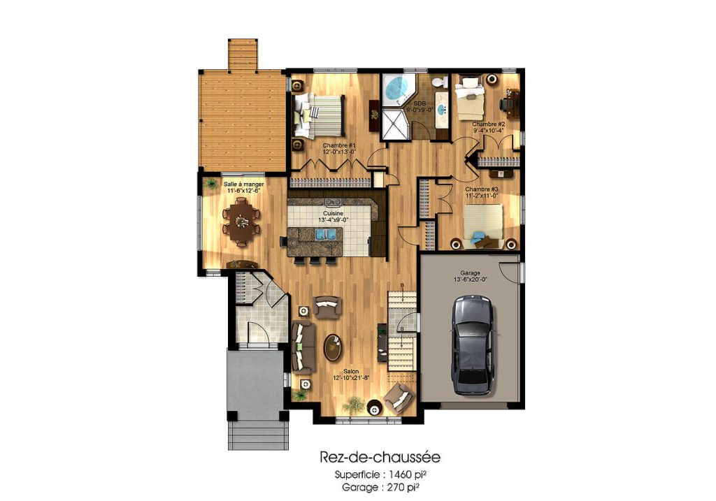 Modèle de maison neuve Jessica : plein-pied de 1460 pi² avec 3 chambres